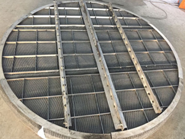 是用來將氣體中夾帶的霧沫(霧滴)除去,回收昂貴的霧滴(貴重物料),或凈化氣體減少氣體中的雜質(zhì)。絲網(wǎng)除霧器一般用φ0.10mm~φ0.28mm金屬絲或選用工程塑料(PP、PTFE、FEP、PVDF等),采用特殊的經(jīng)緯方式編織成絲網(wǎng),再將編織的絲網(wǎng)壓成有一定角度的波紋。